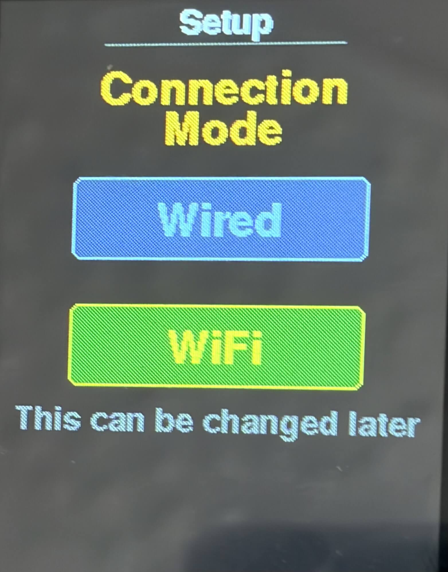 - On first boot, select WiFi or Wired as your connection mode