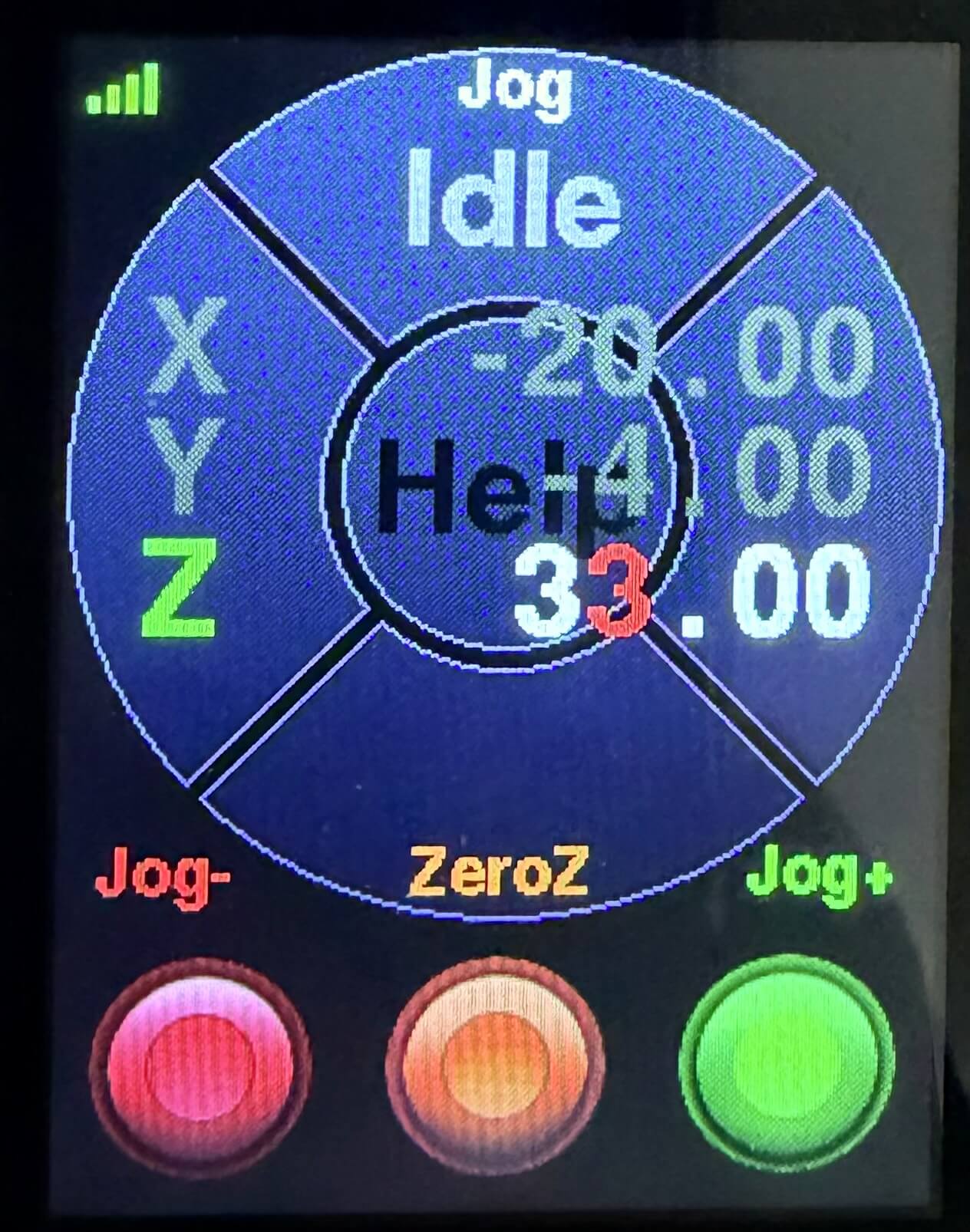 - Signal strength is displayed on the main menu screen as 0–4 bars